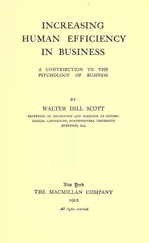 | Increasing Human Efficiency in Business by Walter Dill Scott . ; - .