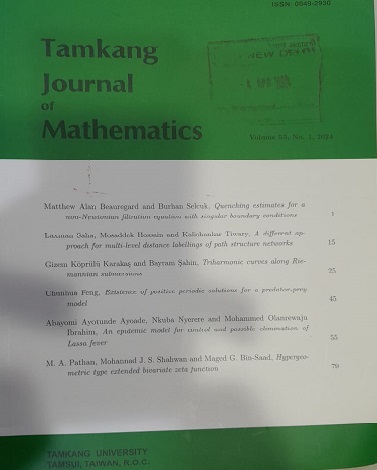 | Tamkang Journal of Mathematics . ; - .