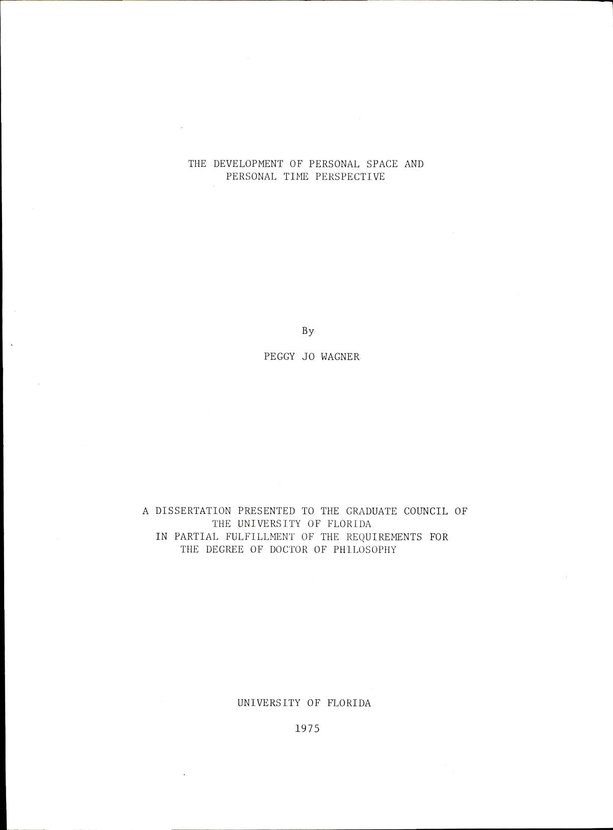 | Development of Personal Space and Personal Time Perspective by Wagner, Peggy Jo . ; - .