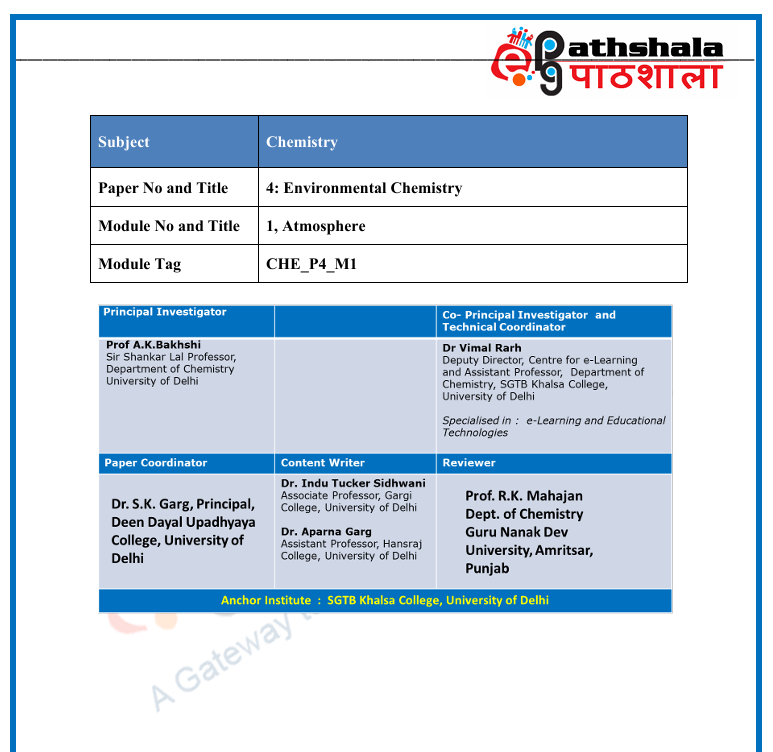 Chemistry: Atmosphere .