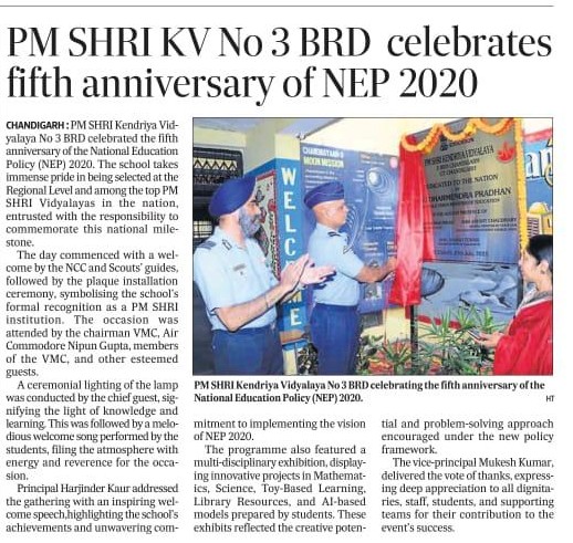 PM SHRI KV NO 3 BRD CELEBRATES FIFTH ANNIVERSARY OF NEP 2020: FIFTH ANNIVERSARY OF NEP 2020